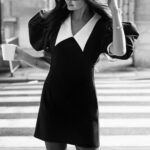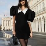 Modern Paris Dress – designed for a woman who commands attention without saying a word. Clean lines meet bold proportions — sculpted, puffed shoulders create a powerful posture, while the contrast collar adds refined character.