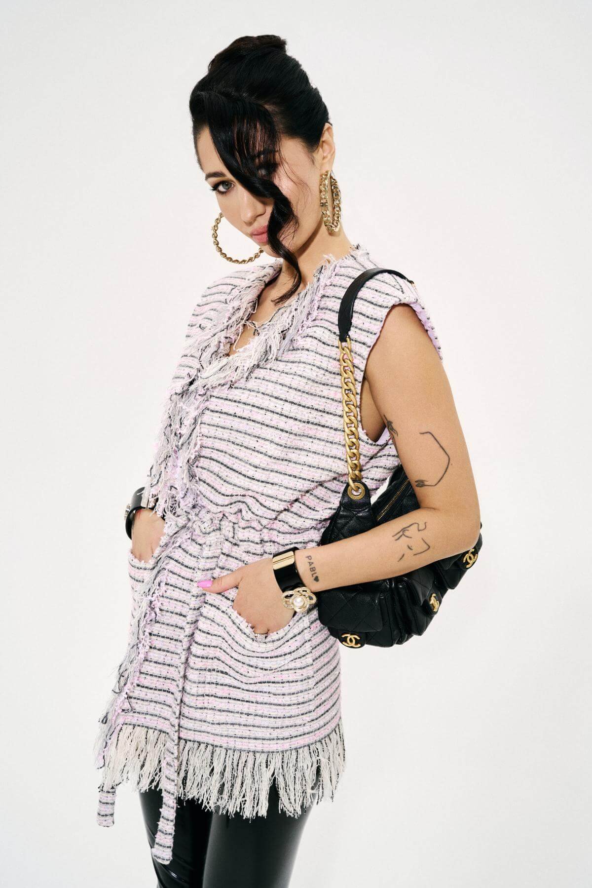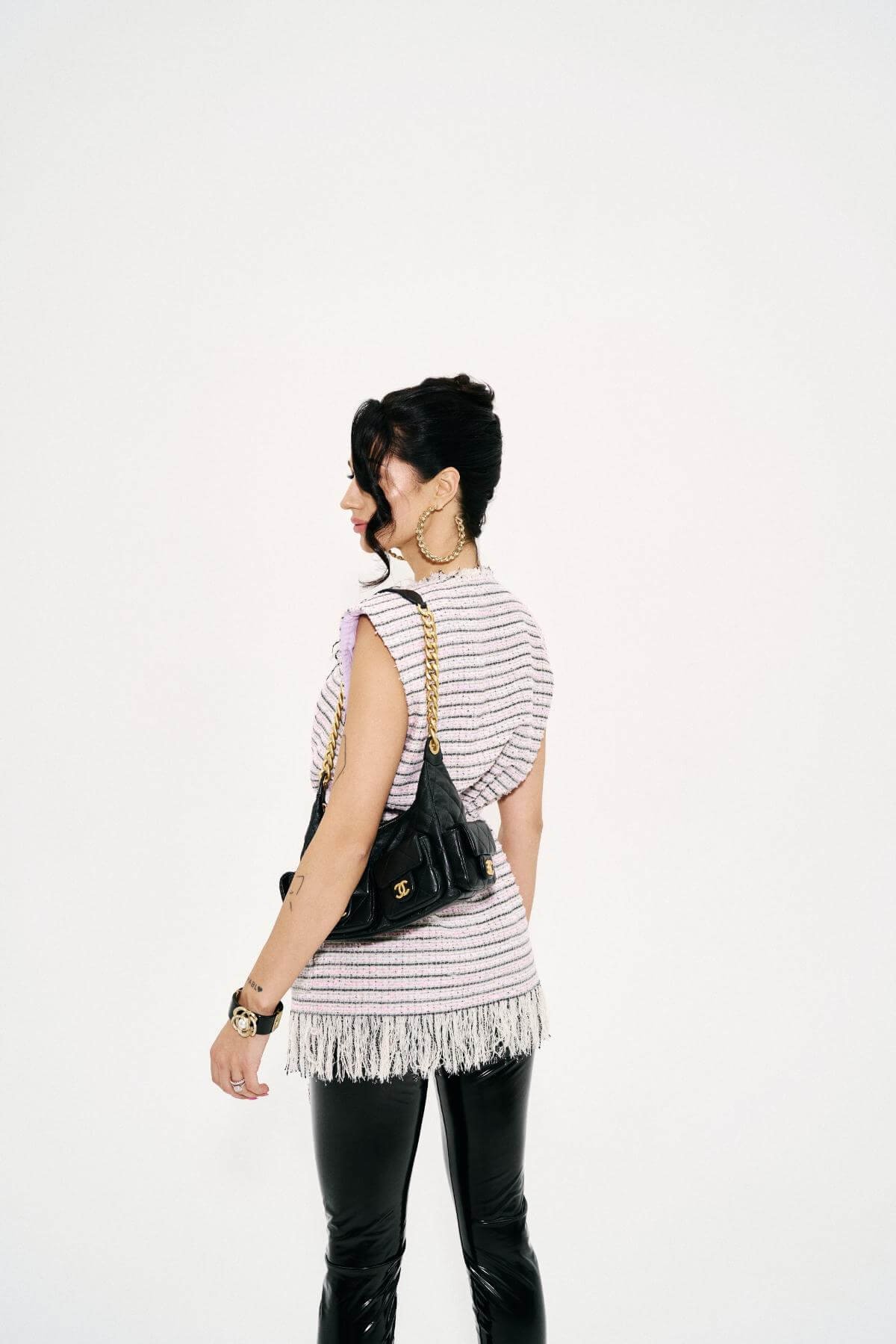 Hand-frayed threads introduce a touch of controlled chaos – a human, artisanal detail that adds texture and quiet boldness.