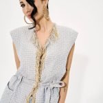 Structured shoulders create a confident frame, while the waist tie refines the line – clean, precise, distinctly feminine.