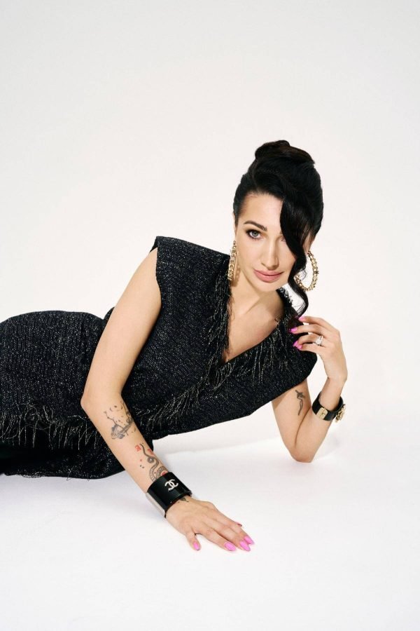 Structured shoulders create a confident frame, while the waist tie refines the line – clean, precise, distinctly feminine.