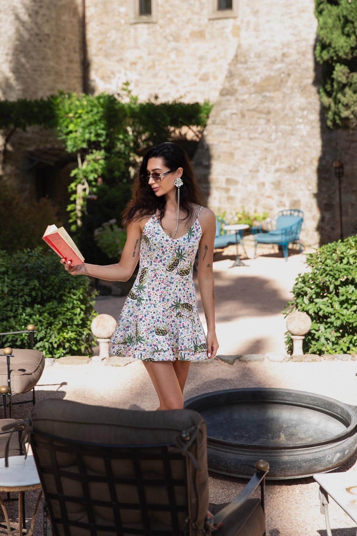 THE PINEAPPLE BLOOM DRESS is a 100% linen piece that blends lightness, playfulness, and understated femininity.